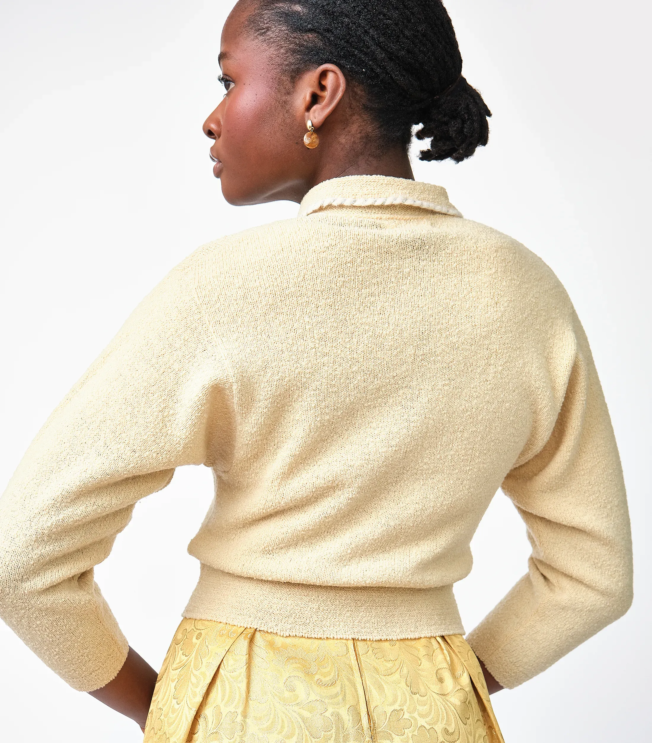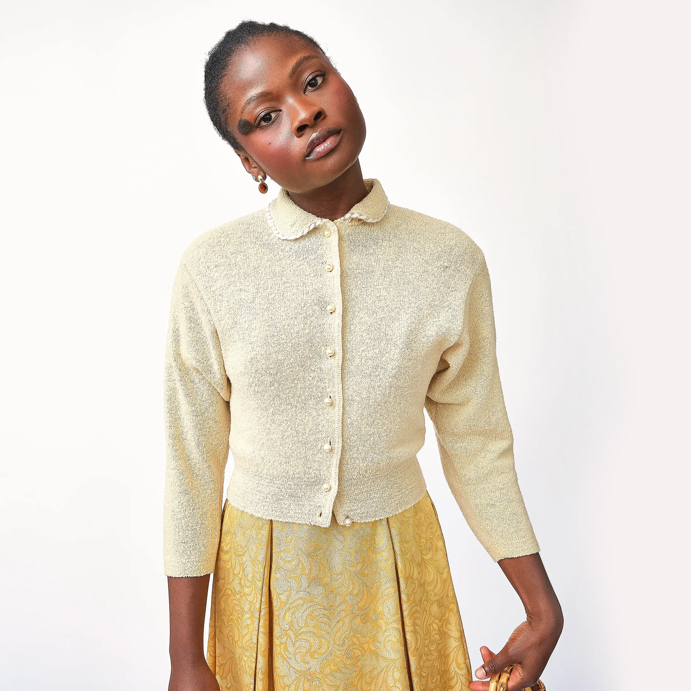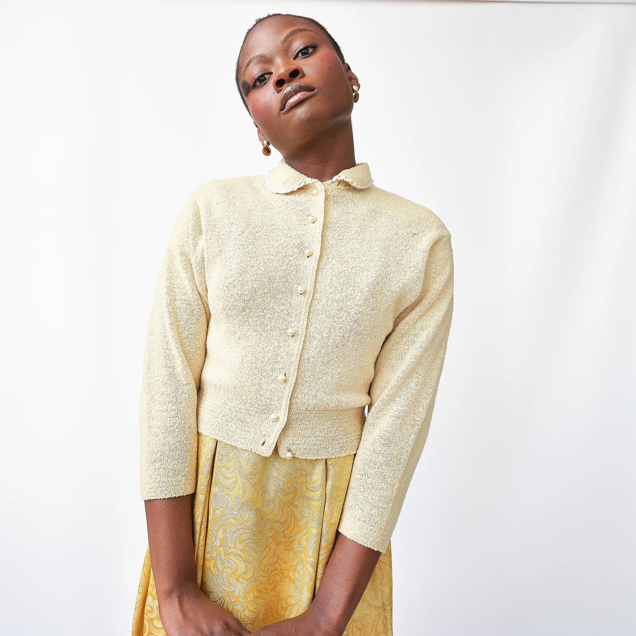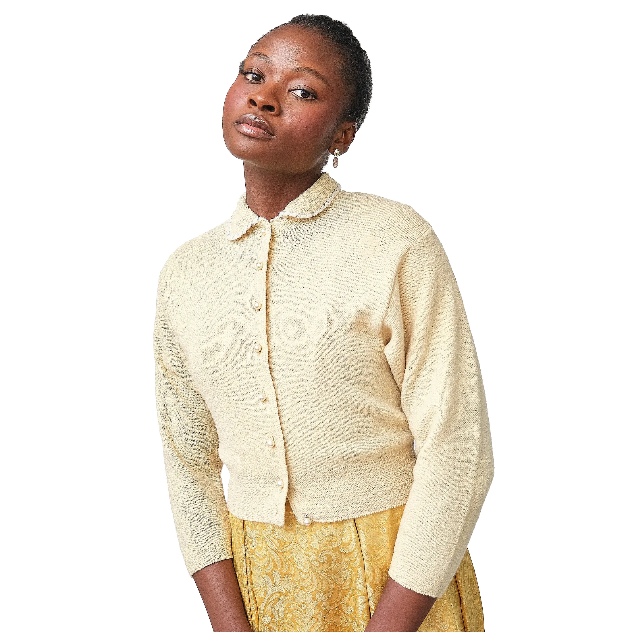 1950s Kimberly Knitwear Cream Bouclé Cardigan – Faux Pearl Button Detail