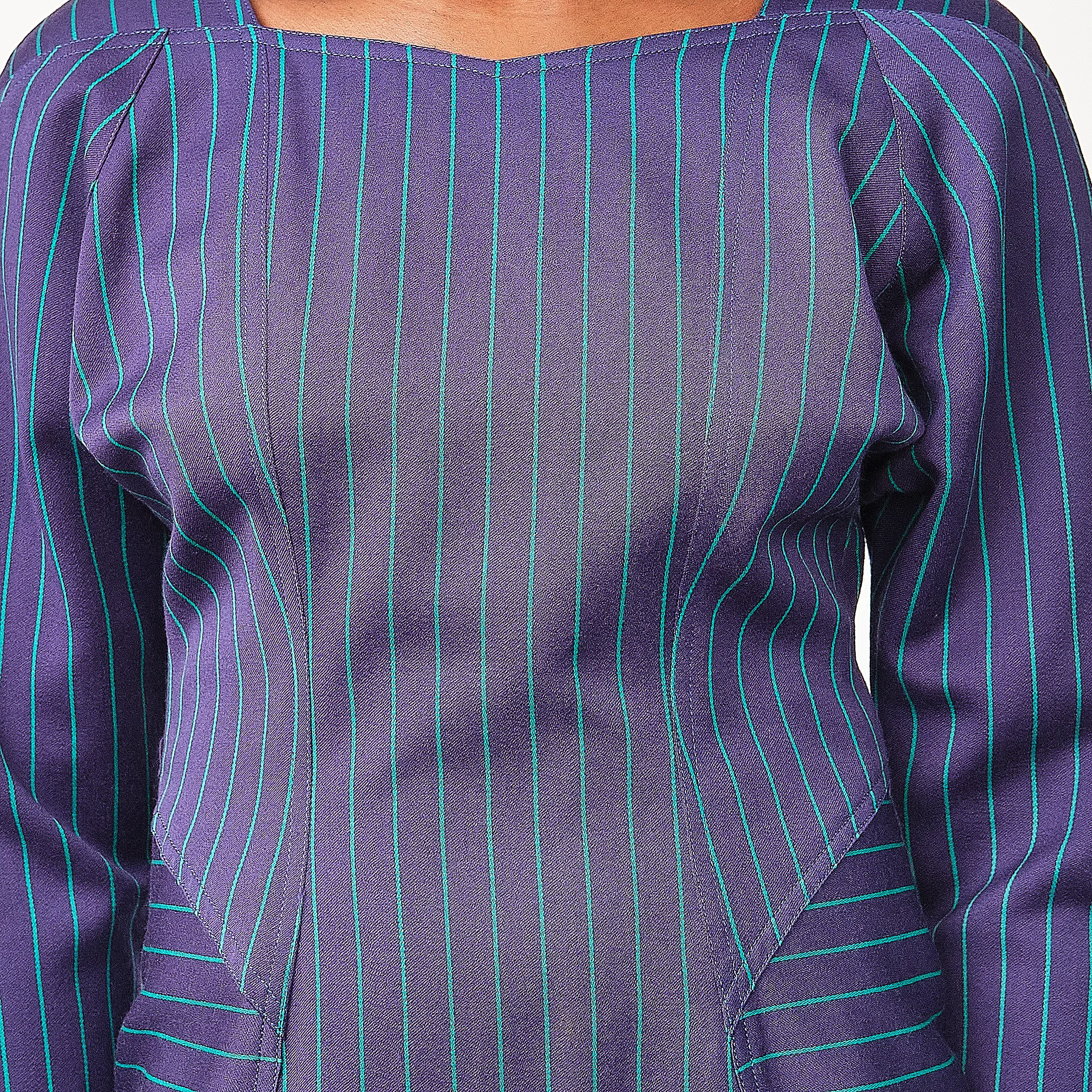 1980s André Luciano Purple & Teal Pinstripe Wool Dress – Size 2