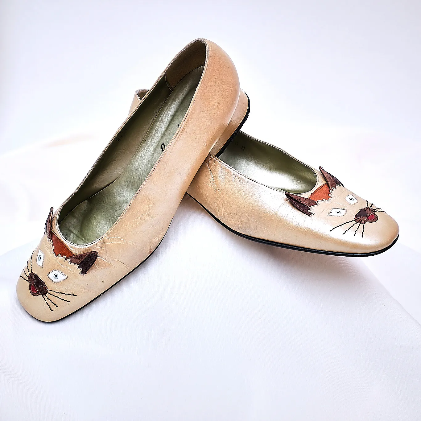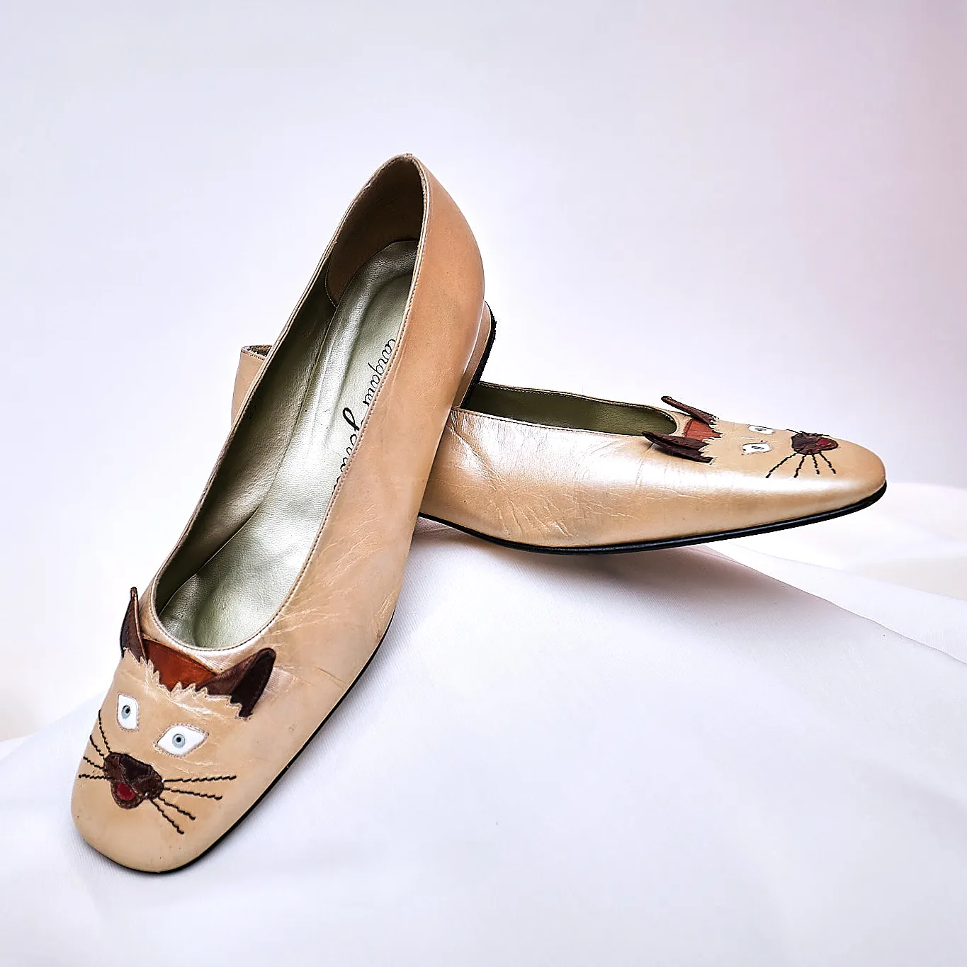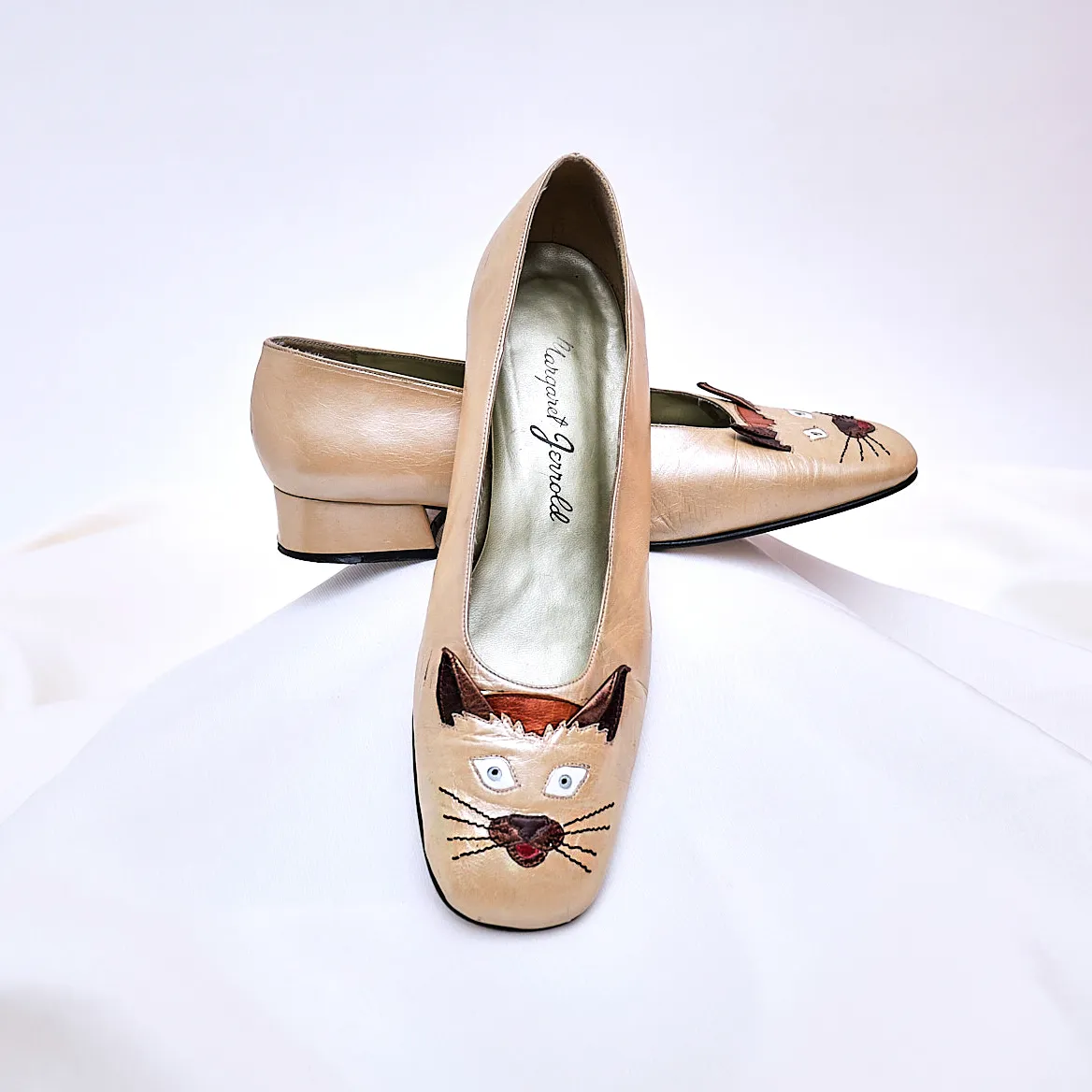 1980s Margaret Jerrold Siamese Cat Face Leather Pumps – Size 9/9.5