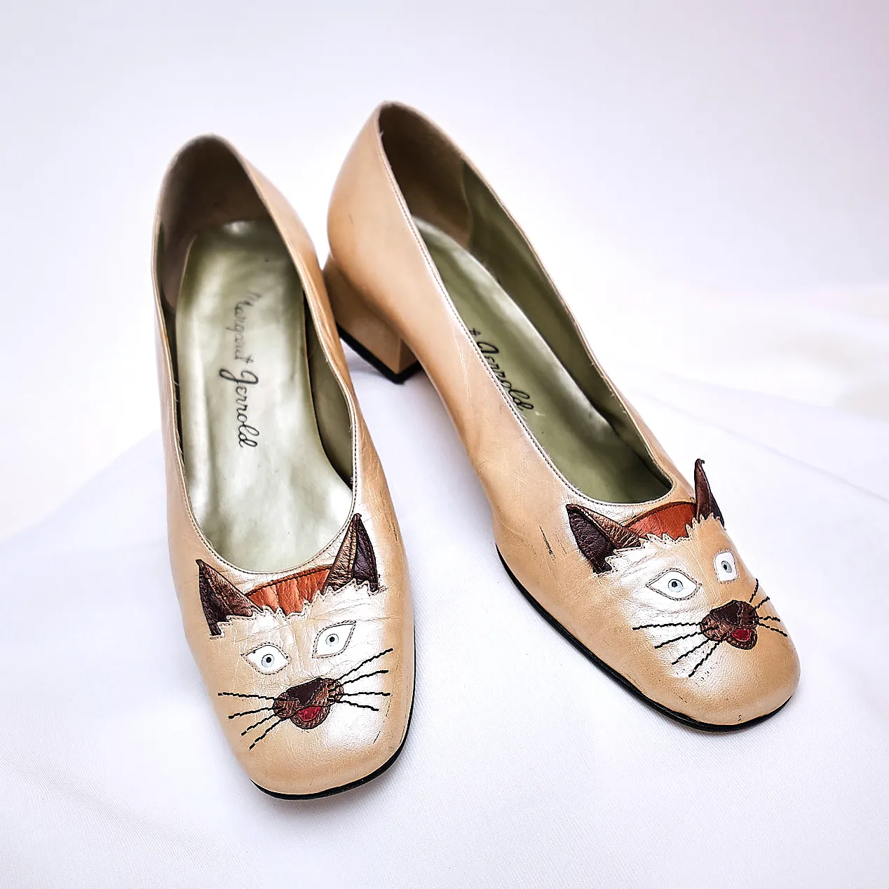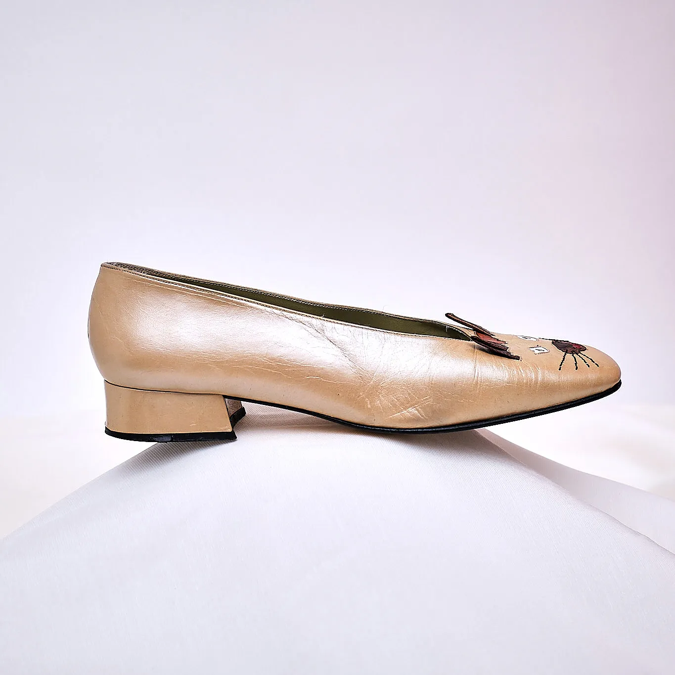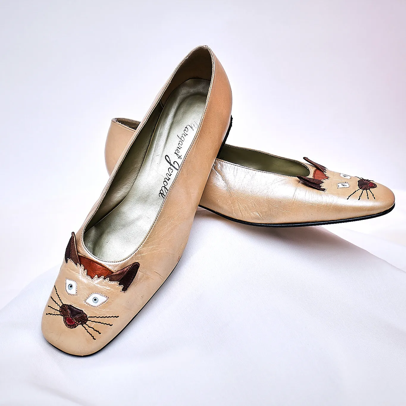 1980s Margaret Jerrold Siamese Cat Face Leather Pumps – Size 9/9.5