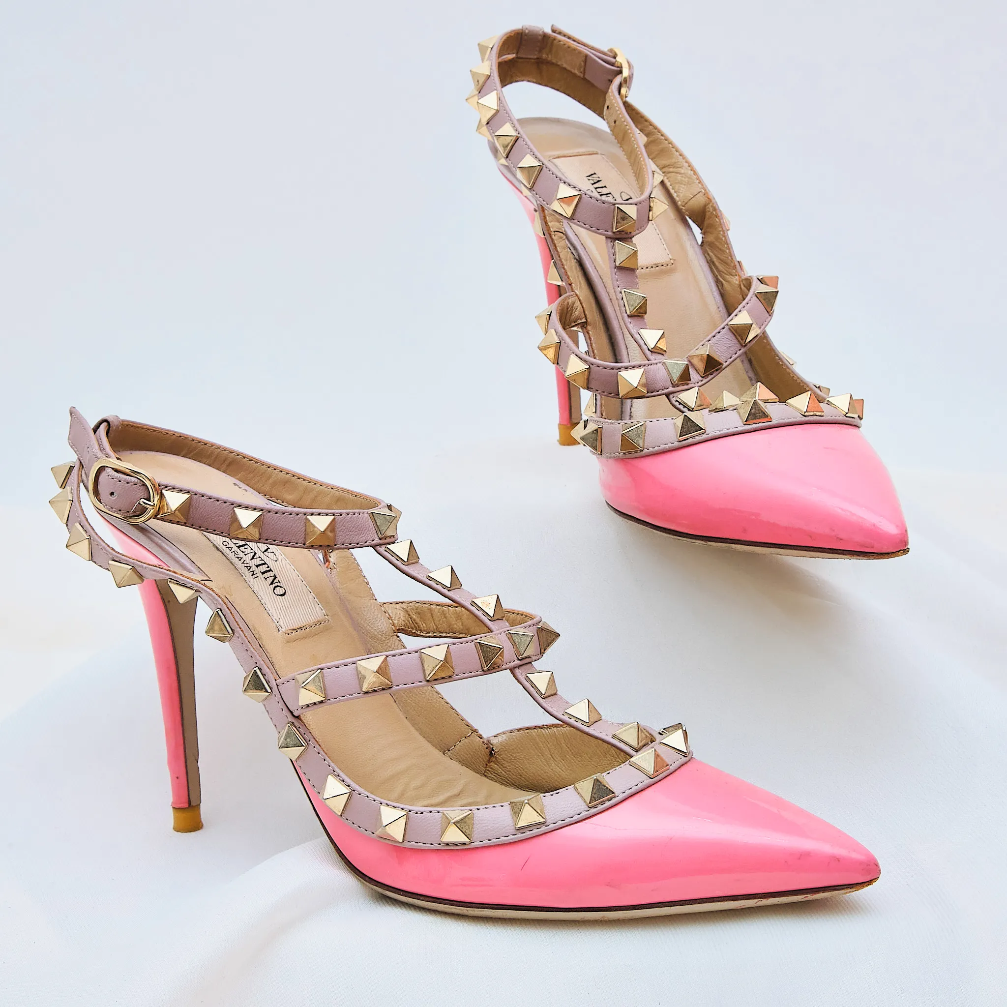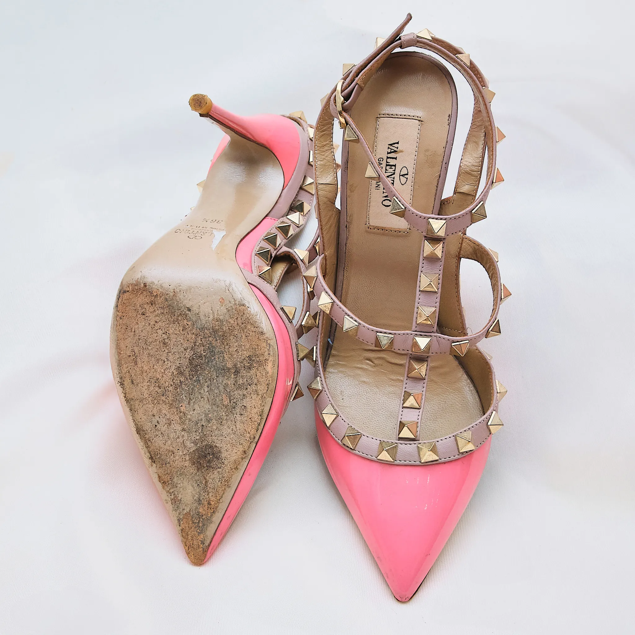 Valentino Rockstud Pink Patent Leather Heels – Size 6.5